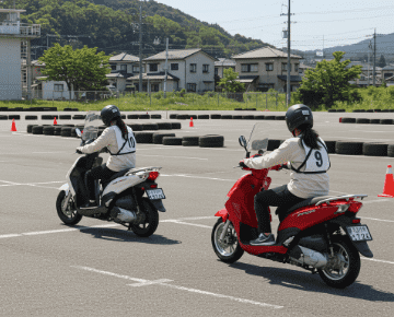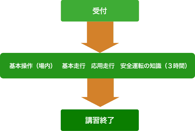 原付免許の学科試験受験前後に受けるもので、実技中心の講習です。